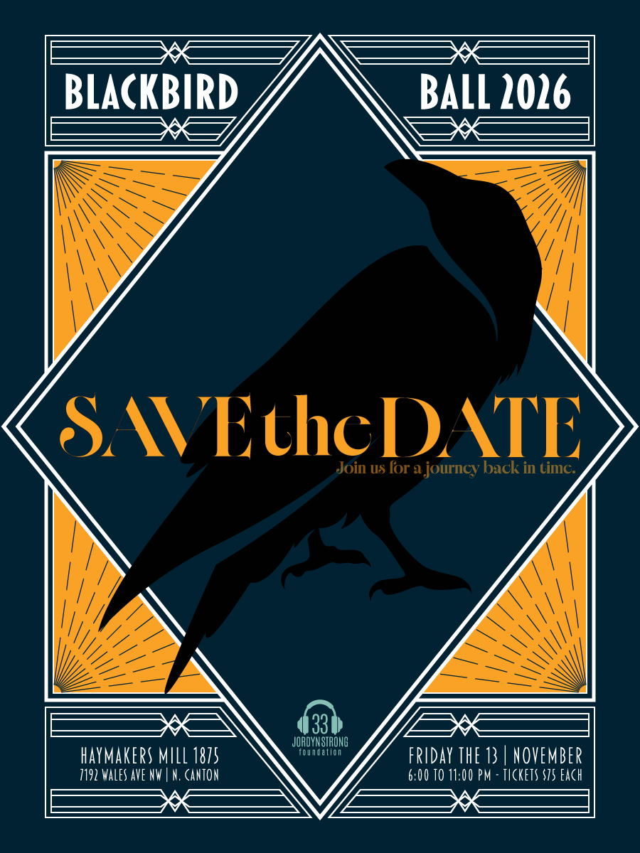 In 2019 the 33 JordynStrong Foundation hosted the first Annual Black & White Gala at the Historic Onesto Hotel in Canton, OH. The inaugural event raised over $61,000 for the Foundation and as intended became the Marque Event for the Foundation. With a hiatus in 2020 due to the COVID pandemic, the Foundation was able to get to work to rebrand this key fundraising event to the Blackbird Ball, gaining its new moniker from the 1968 Beatles song “Blackbird”. The Beatles are notably one of Jordyn’s Top 3 favorite bands and “Blackbird” was listed in her “Fab Four” - if you are an XM subscriber and listen to the Beatles Channel, you know just what this means.